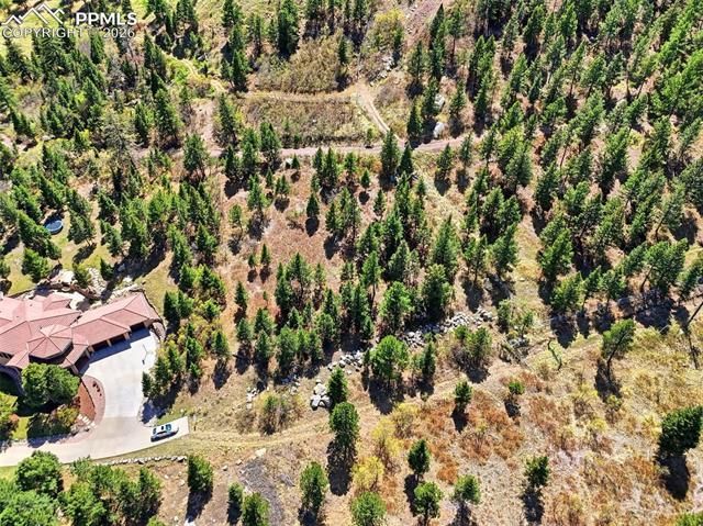 Rare opportunity to build your dream home on a breathtaking view lot in the highly sought-after Spires area of Colorado Springs. Positioned near the top of the community just below NORAD, this exceptional custom home site offers sweeping panoramic views of the Front Range, surrounding mountains, and the natural beauty Colorado is known for. The property features mature trees and a gently sloping terrain that is ideal for a walk-out design, allowing a future home to capture both privacy and incredible mountain views. The natural topography and elevated setting create a stunning backdrop for a custom home while blending beautifully with the surrounding landscape. One of the most unique features of this property is that it backs directly to the Cheyenne Mountain Space Force Station/NORAD military reservation, offering a rare level of privacy and protected land behind the lot. With no residential development directly behind you, the setting feels quiet, private, and surrounded by nature while still being only minutes from the conveniences of Colorado Springs. An additional major advantage is that utilities are already available at the lot line, significantly simplifying the building process and helping reduce upfront development costs compared to many other vacant land opportunities in the area. Whether you're envisioning a luxury mountain-modern retreat, a custom Colorado dream home, or a private hillside escape designed to maximize the incredible views, this property provides an outstanding canvas to bring that vision to life. Enjoy the perfect balance of natural beauty, privacy, and accessibility in one of Colorado Springs’ most unique and scenic locations. Opportunities to build in this area with views, trees, and backing to protected federal land are becoming increasingly rare.